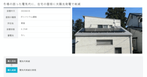 きっかけは、家を新築で建てるときに太陽光の導入は検討したのですけども、当時は太陽光って凄く高くて(11年前)、融資の部分とも見合わなかったんですね。そして今回、電気代が高騰していることを感じて、太陽光の費用を改めてみたら下がっていたので導入に至りました。