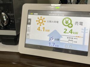 ▲S様宅の発電量・消費量・売電量の分かるモニター
