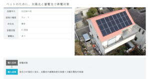 犬を預かるうえで、夏場に停電してしまうとクーラーが効かなくなってしまったり、大きなリスクとなる不安が大きかったので、そういう時でも太陽光でクーラーを動かせたらなと思い、太陽光を導入しました。