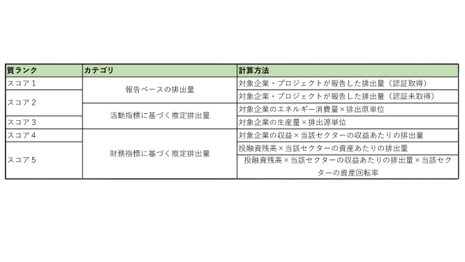 PCAFではGHG排出量の算出式が明示されており、報告の透明性を高めています。