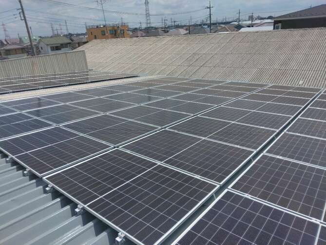 工場の屋根には当社で施工を行った太陽光発電システムが積載されている。