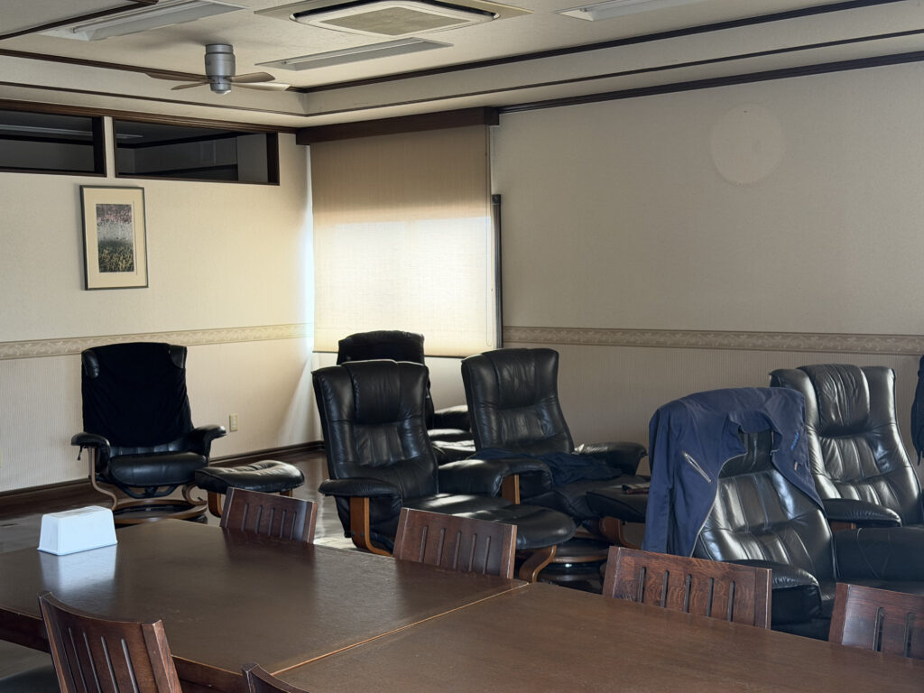 休憩室にリクライニングシートを設置し、働く方が体を休められるよう工夫されている。