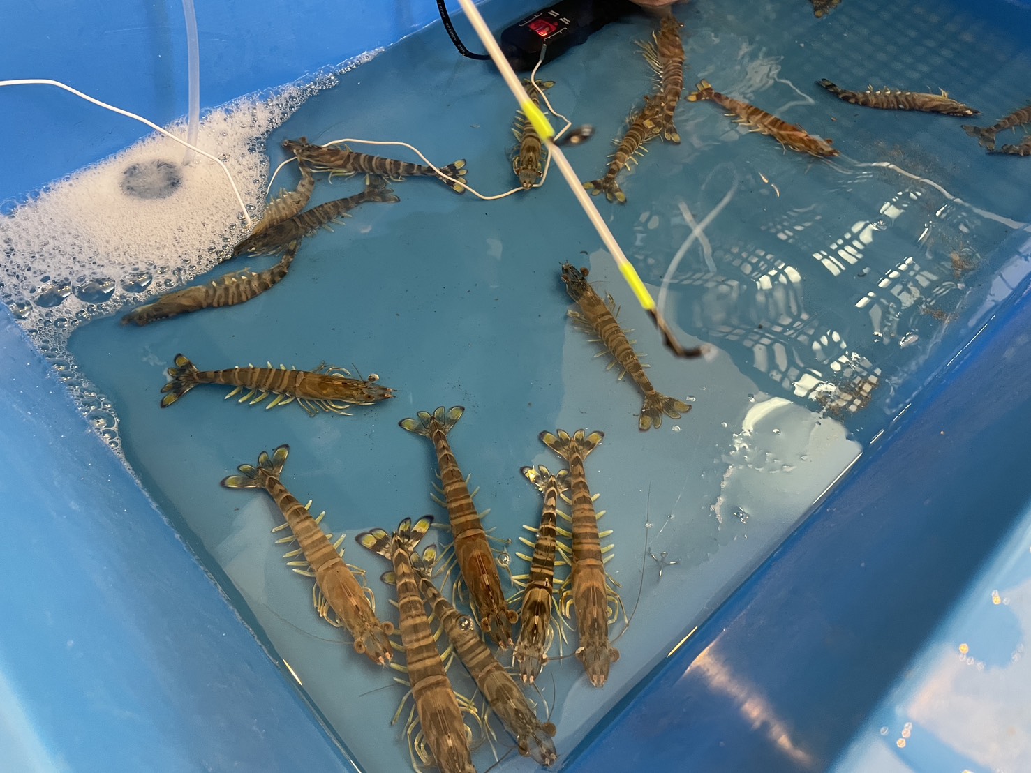 日々の管理や試験運用を重ねてきた車海老が、いよいよ社内でお披露目できる段階に。今回は「まずは社員に食べてもらい、率直な感想を集めたい」という思いから、試食会として企画しました。