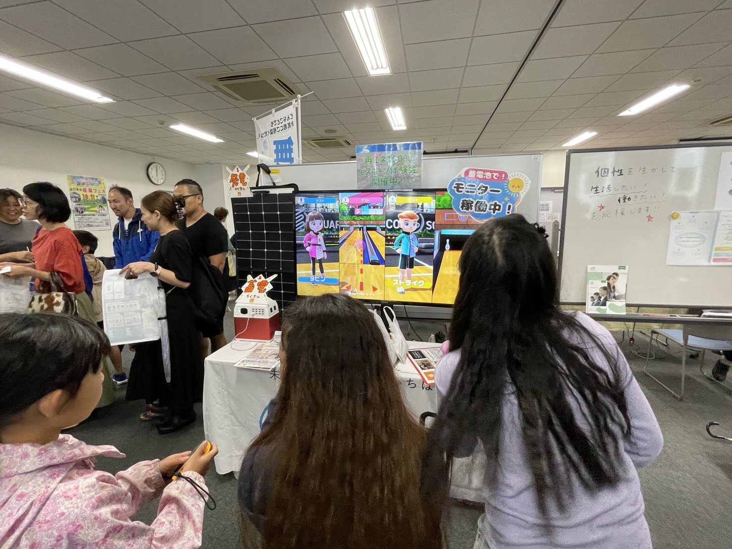 「今回は再エネ100%でゲーム体験を行っているんですよ」とお伝えすると、保護者の皆さまが一様に目を見開き、興味深そうな表情を浮かべてくださいます。“遊びながら環境のことも知れるんだ”と気づいた瞬間の、あの少し驚いたような、嬉しそうな反応がとても印象的です。